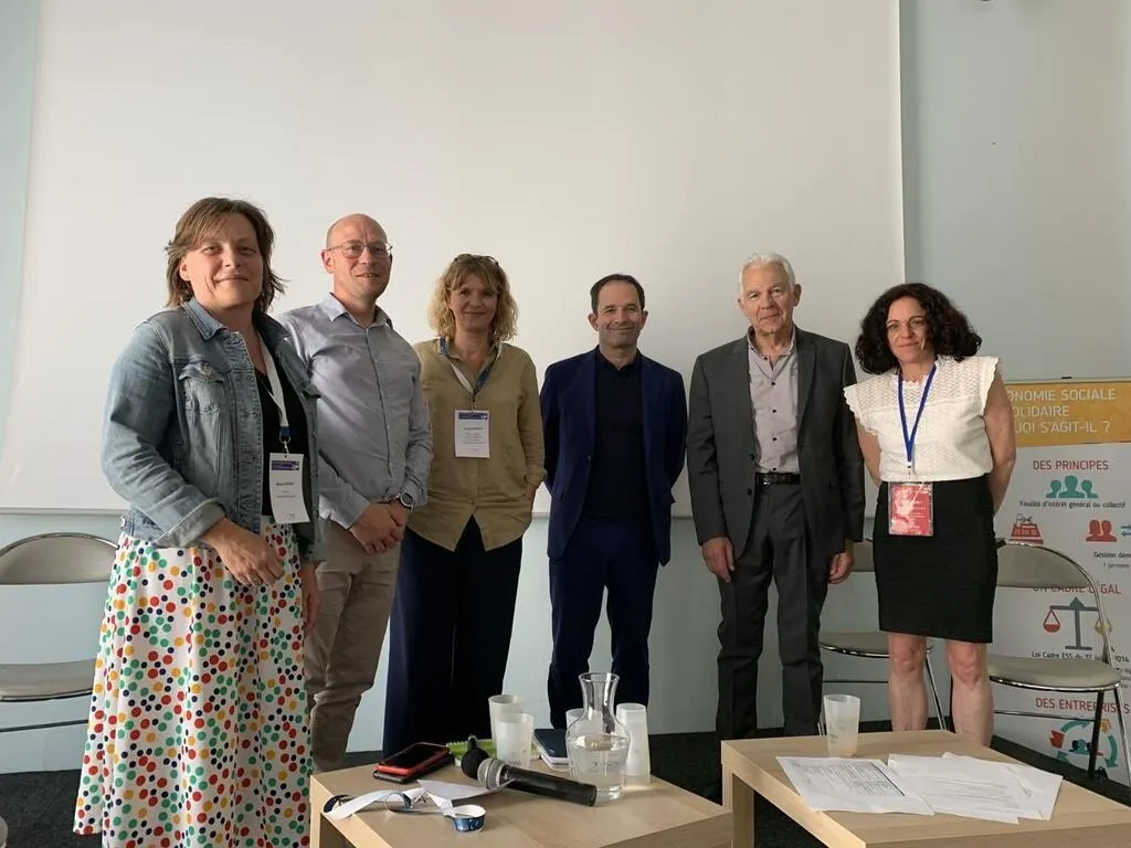 1Benoît Hamon, futur président de la CNESS (Chambre nationale de l »économie sociale et familiale) est venu rendre visite à l’équipe de la CRESS : De gauche à droite, Mahel Coppey, Antoine Detourné, Gilles Cavé et Chloé Durey. © CRESS